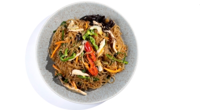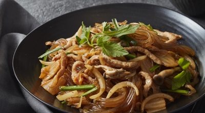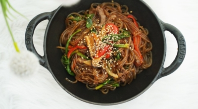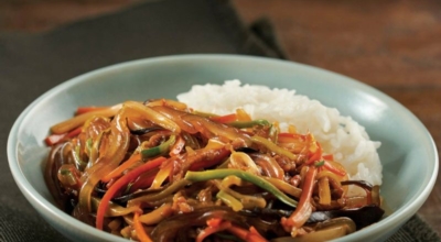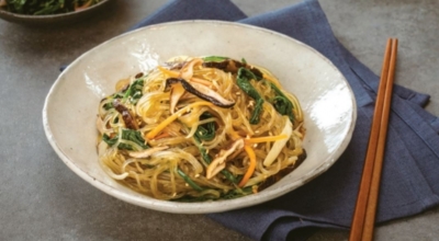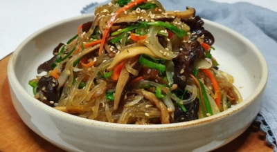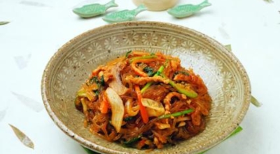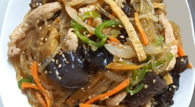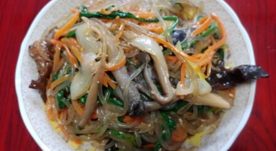 당근, 양파, 고기, 목이버섯, 시금치 (야채 색상의 조화와 영양분의 균형을 중시한다) 등을 기름으로 볶은 뒤 삶은 당면을 간장양념으로 같이 볶는 요리다. 마지막에 참기름을 넣고 버무려서 완성합니다. 쫄깃한 당면 씹는 맛과 야채와 고기 그리고 양념의 조화로 자극적이지 않아 많은 사랑을 받는 대한민국 대표 국민 요리입니다. 잔칫상, 명절상, 생일상에 수시로 올라가는 식품 중 한 개입니다.