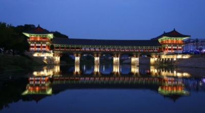 월정교는 통일신라 시대에 설치된 다리로 국왕이 사는 궁궐인 경주 월성과 건너편의 남산 지역을 이어주는 역할을 하였어요. 조선시대에 유실되어 없어진 것을 10여 년간의 조사 또는 고증과 복원을 진행해 2013년에 1차 누교 복원을 시작으로 2018년 4월 모든 복원을 완료하였습니다. 신라시대 월성과 남쪽을 이어주는 교량으로 목조교량입니다.