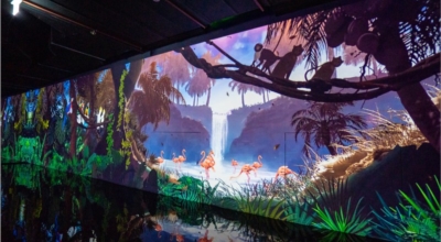 처음 만나는 공간은 ‘재규어의 숲’입니다. 거대한 나무와 열대 숲이 조성되어 있으며 사면의 벽을 메운 브라운관에서 화려한 색채의 자연과 신비로운 동물들이 등장하는 미디어 아트가 약 8분 48초간 펼쳐집니다. 이어서 깊은 숲속 버려진 ‘신전’으로 향해 고대 문명의 태동을 역동적인 영상으로 만나게되어요. 6분의 신전 미디어 아트가 끝나면 바다 속으로 떠나게돼요.