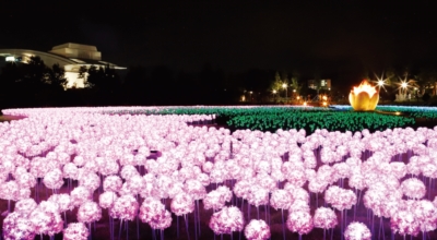 낮에도 물론 아름답지만 빛누리 정원의 진면모는 밤에 만날 수 있습니다. 해가 서산으로 넘어가면 빛누리 정원의 화려한 밤이 시작됩니다. LED꽃 조명은 시시각각 다른 색으로 변신하는데 경주의 상징 색인 경주 8색이 적용되었습니다. 정원 사이사이로 산책로가 내어져 있어 빛나는 꽃들과 또한 수려한 밤의 산책을 즐기기 좋습니다.