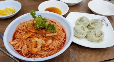재료는 백종원 레시피 2인분을 설명드렸지만 양념장과 국수를 반으로 줄여서 만들었다고 해요. 일단 면을 삶아 주시고요. 잘 삶은 면을 채에 받쳐 3~4번 전분기가 사라질때까지 헹구어 물기를 빼주도록 해요.