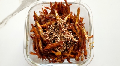 멸치는 물에 10분 정도 담가서 순수하지 않은 물질을 제거해줘요. 그리고 물기를 제거해 주어요. 팬에 식용유를 두르고 중불에서 데워주어요. 데워진 팬에 다진 마늘을 넣고 볶아줘요. 마늘이 익으면 멸치를 넣고 중간 불에서 볶아줍니다. 멸치가 골고루 익어가면 고추장, 설탕, 간장, 참기름을 넣고 볶아주어요. 양념이 골고루 섞인 후 1~2분 정도 더 볶아줍니다. 마지막으로 깨를 살짝 뿌려줍니다.