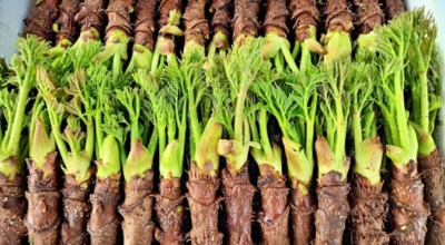 1. 먼저 두릅의 잎파리 부분 말고 꼭대기 부분의 갈색잎을 제거해 주어요.