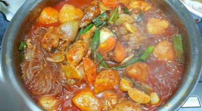 닭 한마리(1Kg), 각종 야채(감자, 당근, 양파) 양념(고추장4T, 간장10T, 물엿이나 올리고당 4T, 다진마늘2T, 다진 청양고추, 후추, 참치액젓 1T, 고춧가루2T, 치킨스톡이나 다시다 1T), 당면