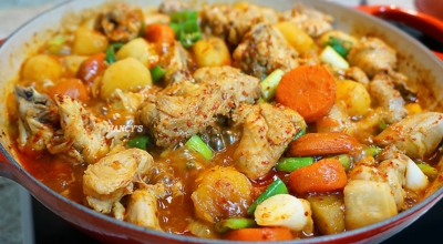 또한, 20분동안 삶을 때 씹는 씹는 맛도 느끼고 싶다면 이 단계에서 집에 남아있는 떡볶이용 떡이나 떡국용 떡을 넣어줘도 됩니다. 닭볶음탕 백종원 황금레시피 20분 정도 충분히 끓었나면 뚜껑을 열고 간을 봅시다. 간을 봤을 때 조금 싱겁게 느껴지면 소금간이나 간장을 조금 더 추가해요. 만일 조금 짜게 느껴지면 여기에 물을 조금 부어주면 돼요. 이러한 식으로 간을 보고난 뒤 맛있게 드시기 바랄게요. 이상 닭볶음탕 백종원 황금레시피였어요.