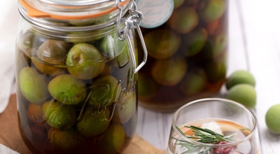 2. 꼭지를 따고 물기 없이 말려 주고, 끓는 물을 부어 병을 소독해 줍니다