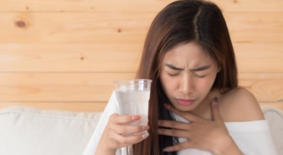 딸꾹질 멈추는 방법 - 허리 구부리고 물을 마신다