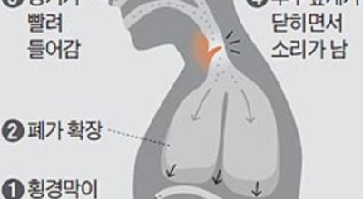 딸꾹질 멈추는 방법 - 숨을 크게 들이쉬고 참습니다.