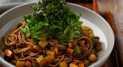 메밀 국수를 그릇에 담고, 손질한 소고기와 재료를 올려 주세요. 마지막으로 양념장을 골고루 섞어 비빔국수를 완성해주세요. 깨를 뿌려 마무리하면 더욱더 맛있는 비빔국수가 완성돼요.