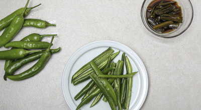 풋고추 80개, 청양고추 20개, 마늘 10~15알, 깻잎 10~15장, 간장 8컵, 매실청 6컵, 식초 2컵 입맛에 맞추어 풋고추와 청양고추의 비율을 조절하셔도 좋습니다. 필자는 매운 것을 좋아하기 때문에 청양고추만으로 만들었어요.